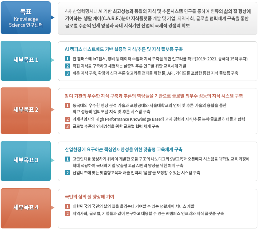 - 지식 과학 핵심역량을 갖춘 졸업생의 배출로 산업체의 경쟁력 제고 및 국가적 경쟁력 향상